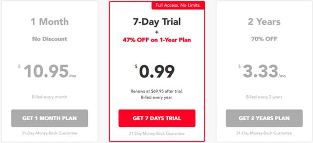 他们宣传 24 小时免费试用以测试该服务。